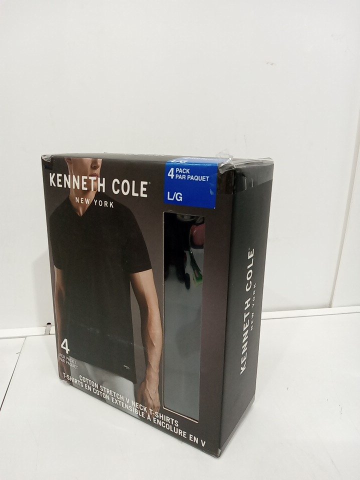 4pk Kenneth cole cotton stretch v neck t shirts - large - black