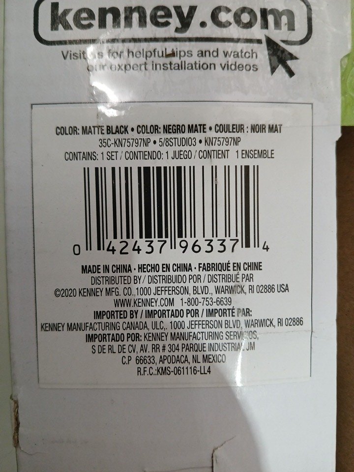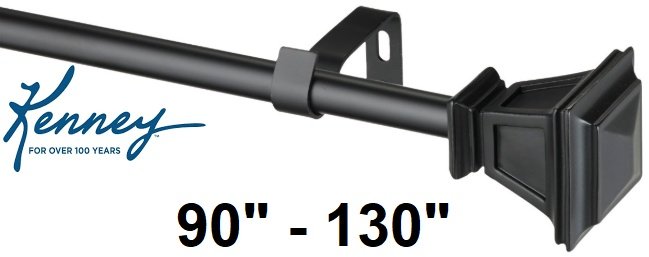 kenney seville curtain rod with finials - 90" to 130" - black (model: kn75797np)