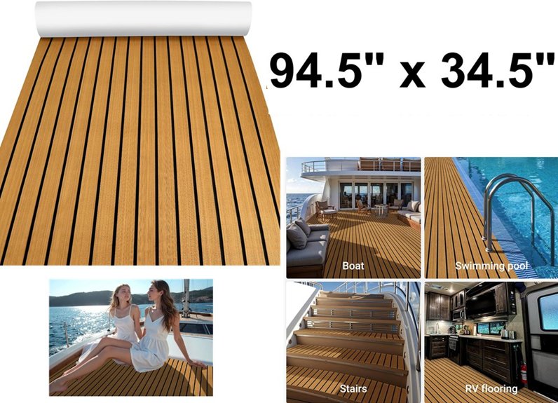 FAMIROSA EVA Self-Adhesive Pontoon Rubber non-Slip Foam Marine Boat vinyl Flooring - 94.5" x 34.5" - Light Brown -