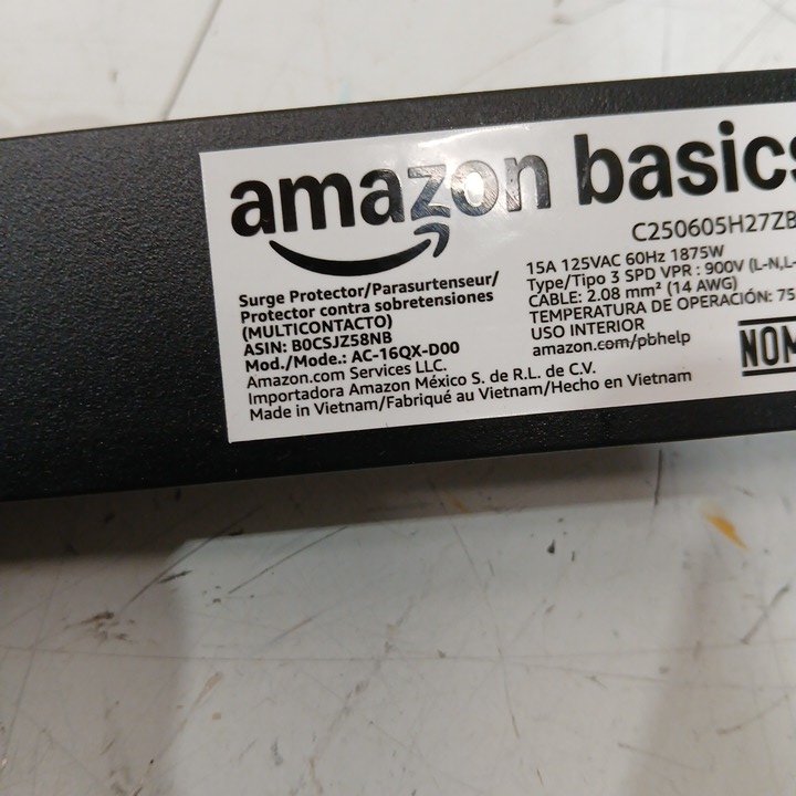 Amazon Basics 16 Outlet Heavy Duty Metal Surge Protector Power Strip Bar with 6ft Extension Cord - 1875 Watts Total - Black (Model: AC-16QX-D00)