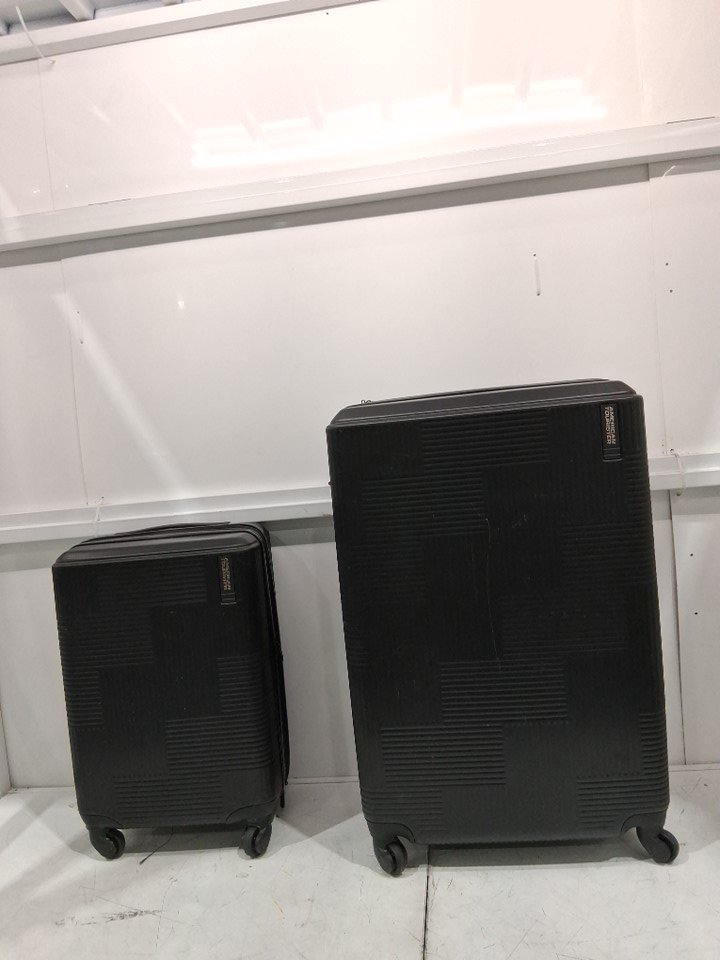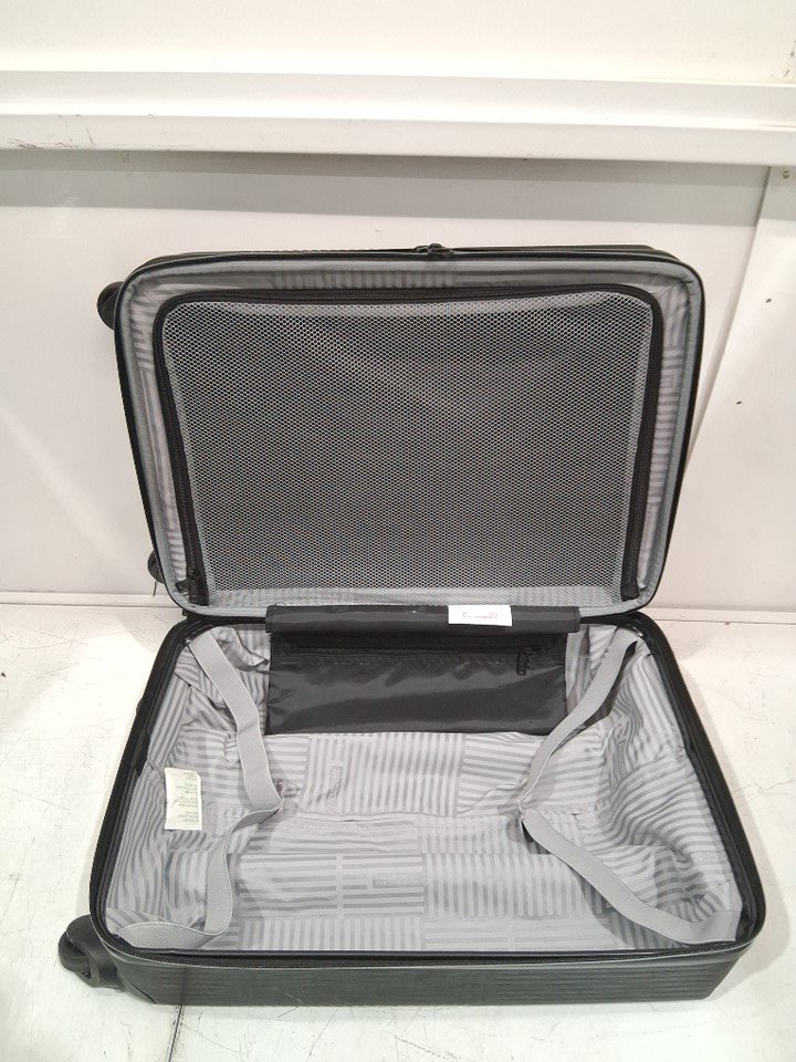 Carry-On Overall Dimensions: 21.5 in. x 15.0 in. x 9.0 in. | Weight: 7.1 lbs Large Overall Dimensions: 30.5 in. x 19.0 in. x 12.5 in. | Weight: 11.0 lbs Please note that there are scratches around the product and there is dirt residue on the wheels due to previous use. (Please see photos)