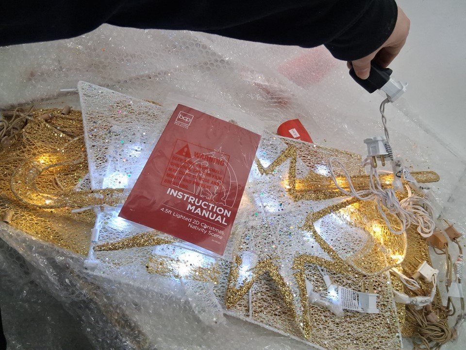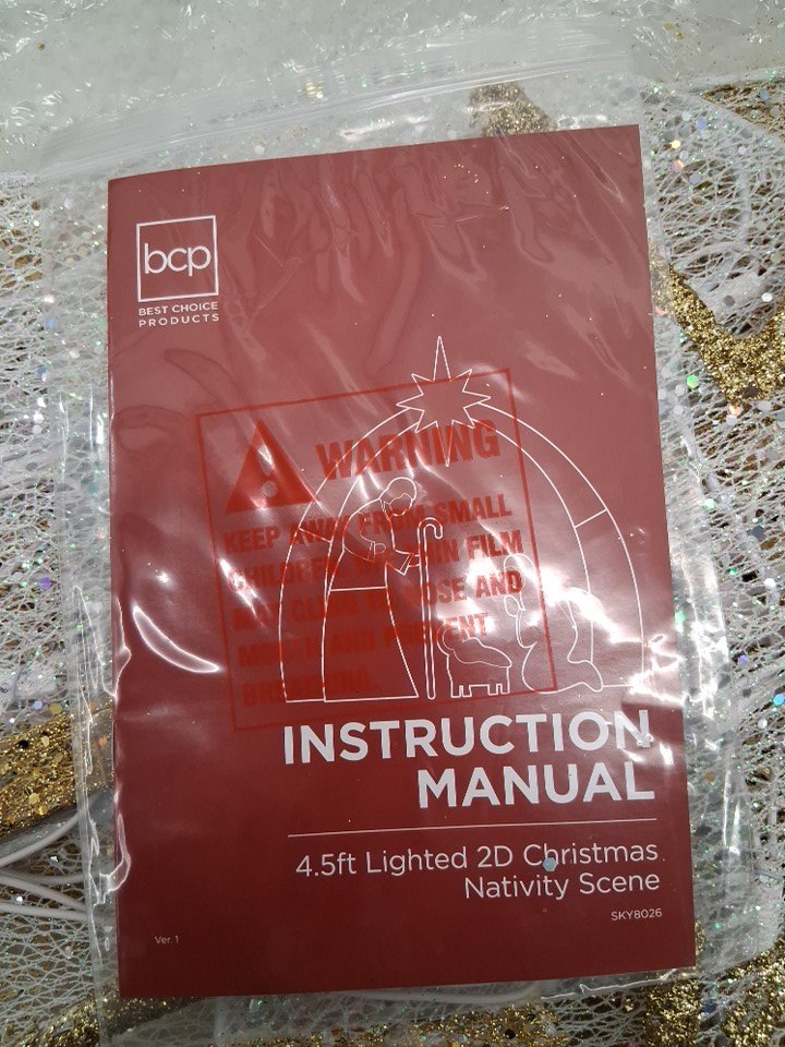 BEST CHOICE PRODUCTS Lighted 2D Christmas Nativity Scene Outdoor Decor wITH Twinkling LED Lights - 4.5FT - GOLD/WHITE