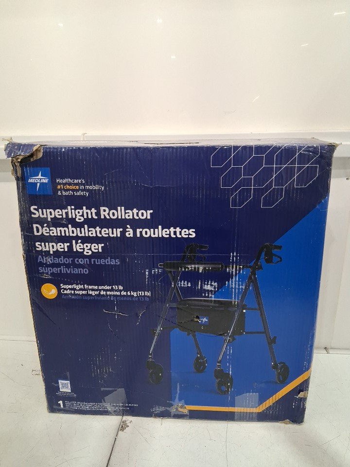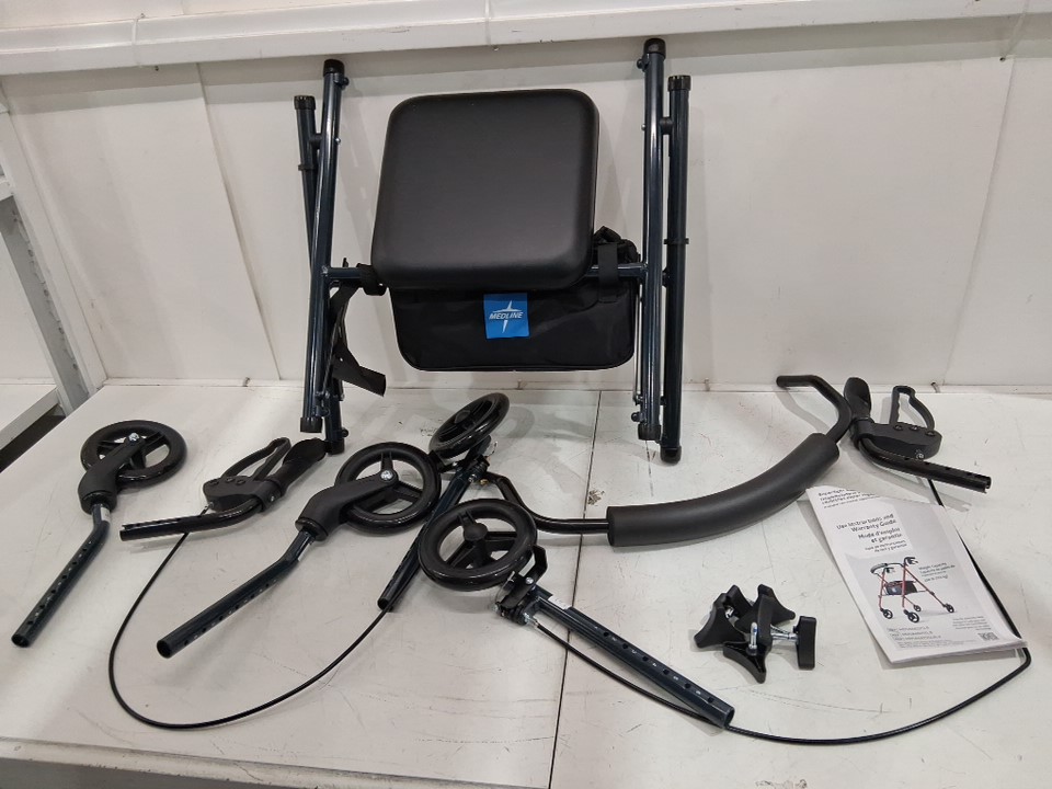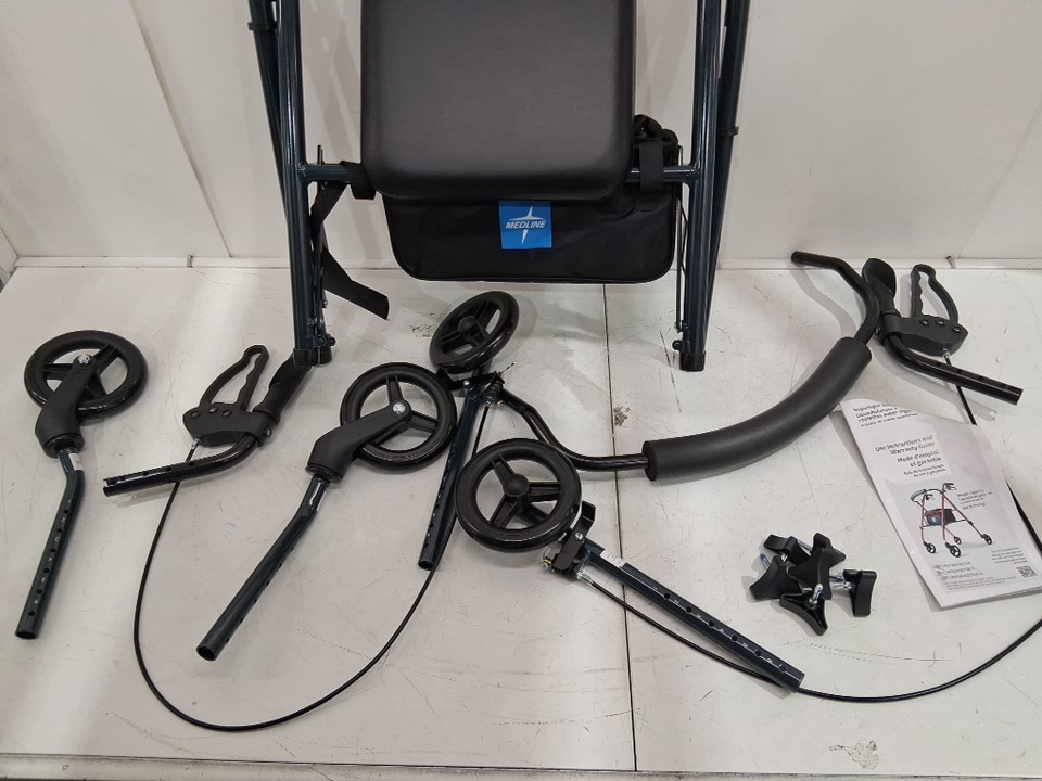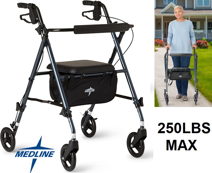 medline folding aluminum mobility rollator walker - 250lbs capacity - smoky blue (model: MDS86825SLB)