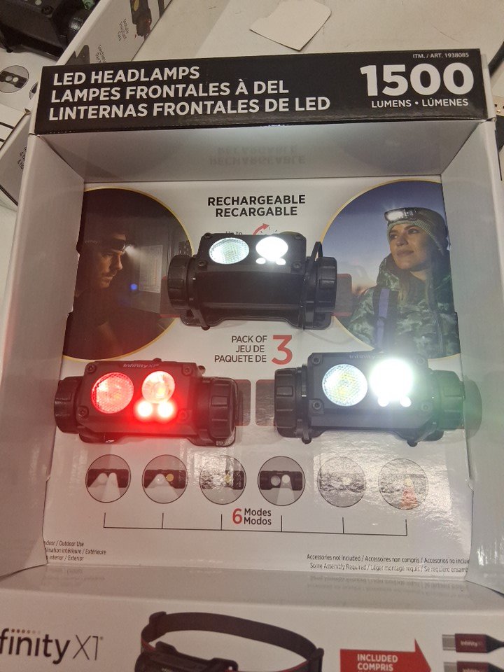 3PK infinity X1 rechargeable water-resistant led headlamp - 1500lm - (model: 1938085)