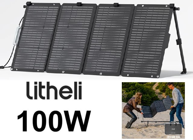 Litheli Waterproof IP65 Foldable Solar Panels with Adjustable Kickstand - 100w - black