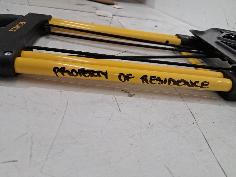 Item came to us with writing on the side of the product saying "Property of residence". See photos attached