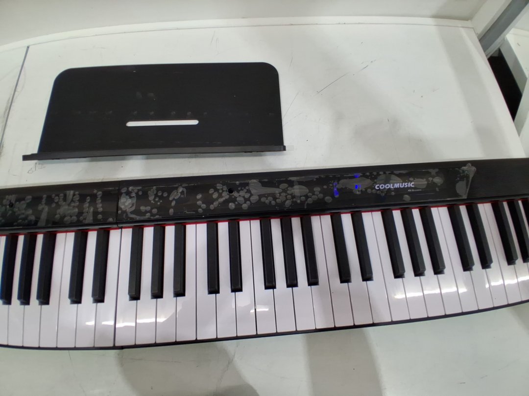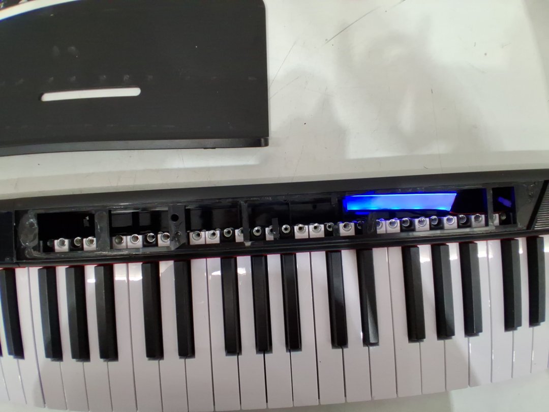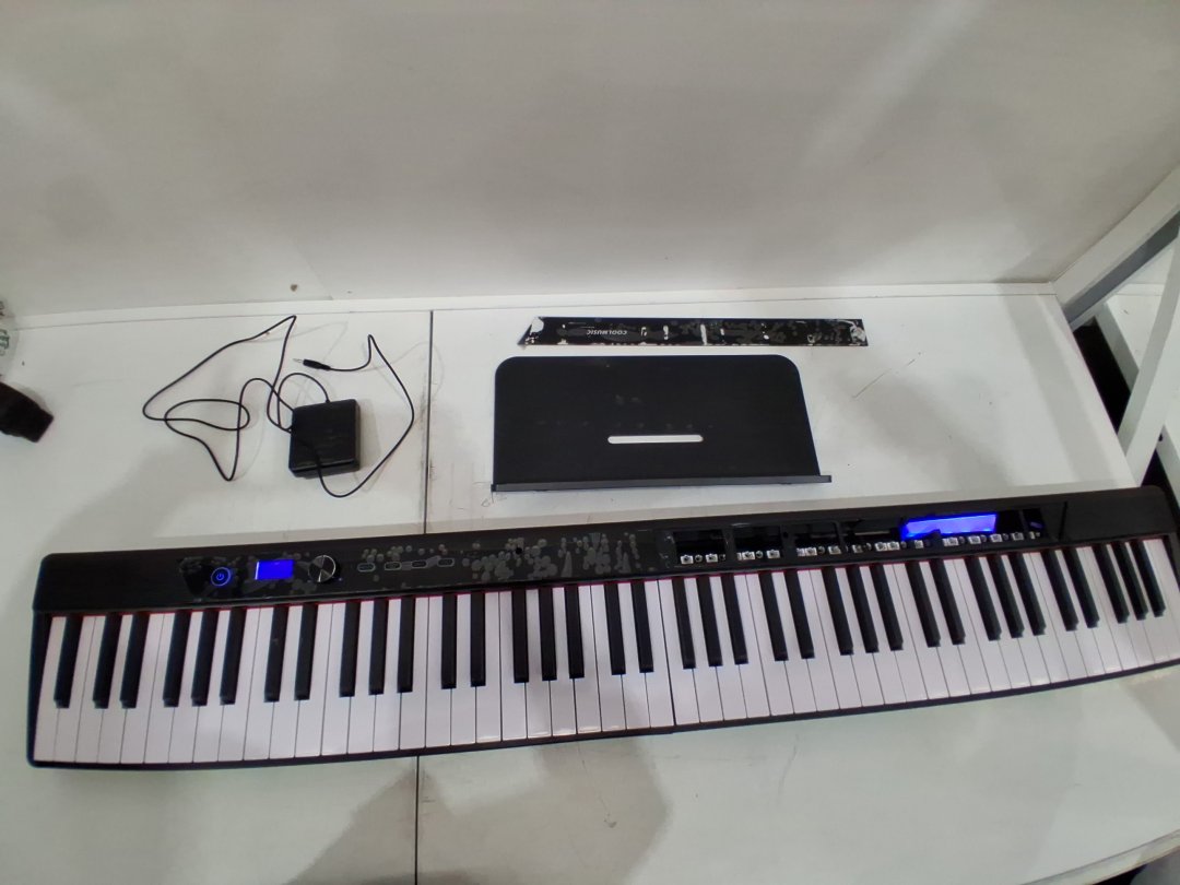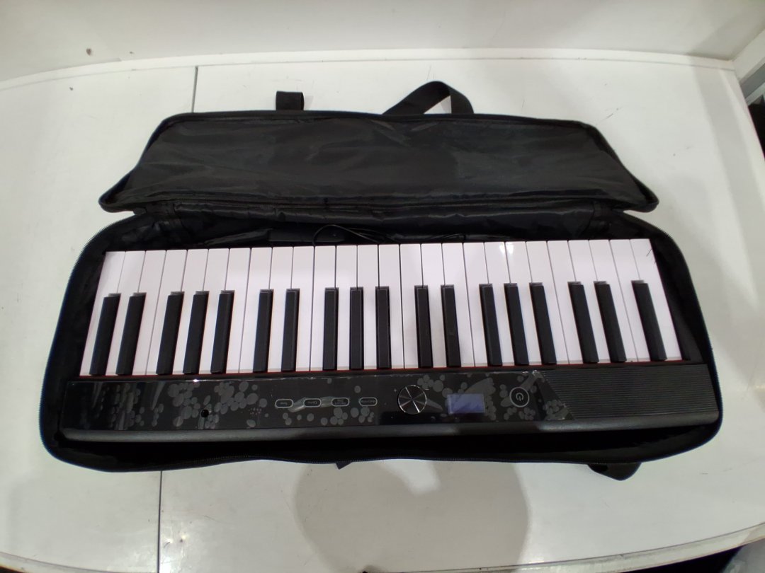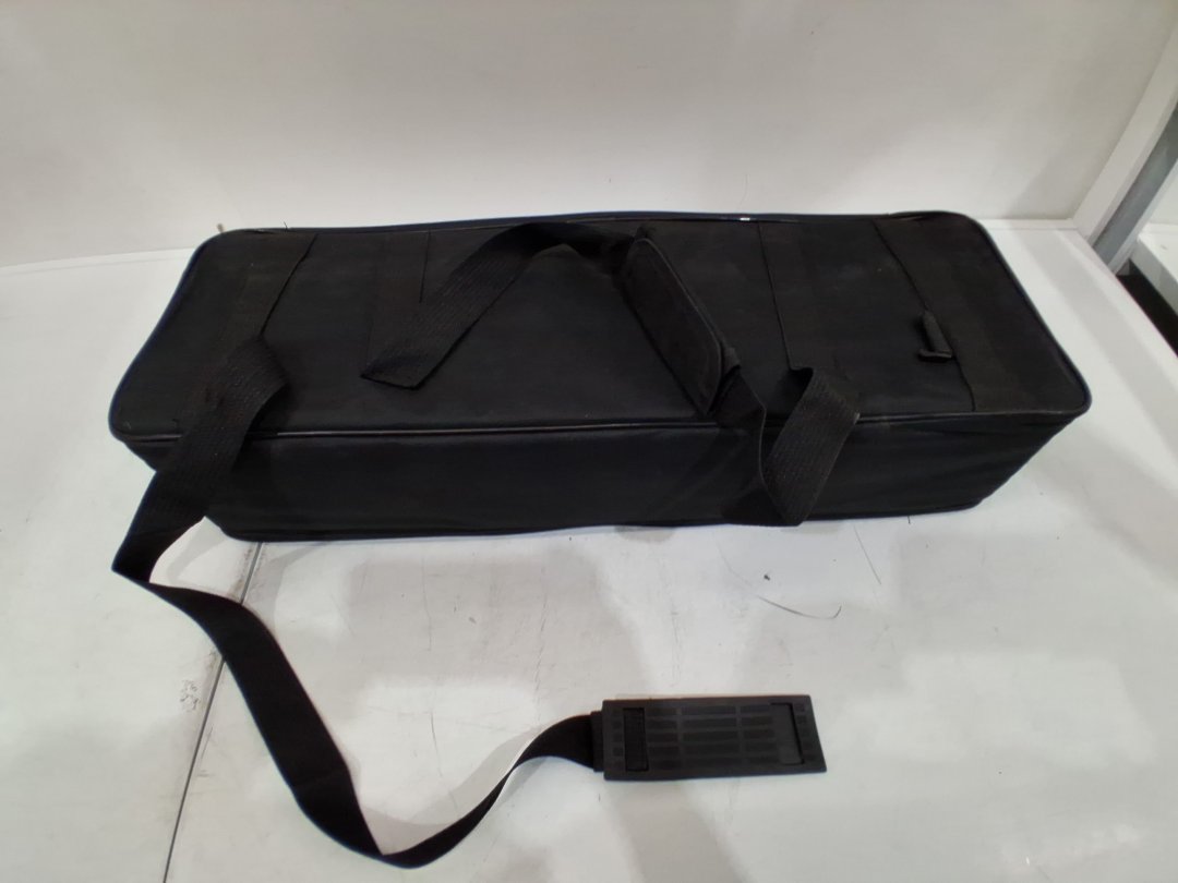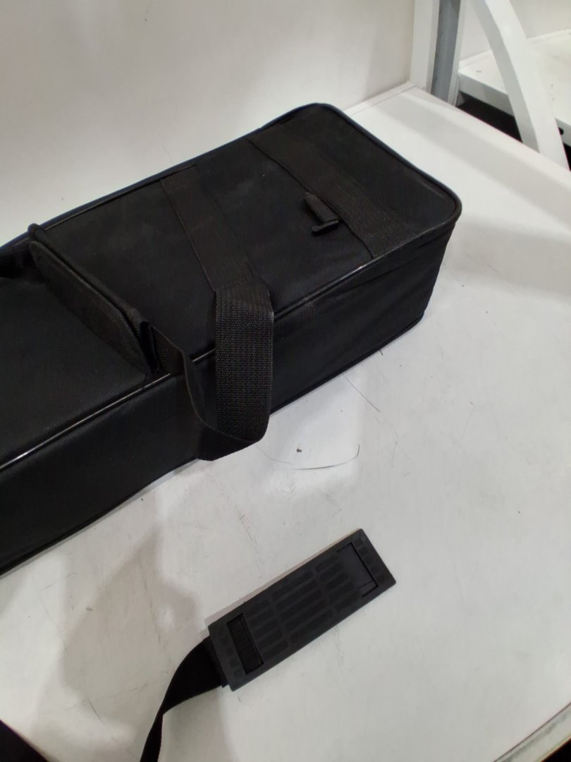Item has a panel that is loose on the front right and can be clicked back into place. Item's carrying case has a broken shoulder strap and small tear in the fabric. Item does NOT include power cable or adapter. Item tested for power and function.