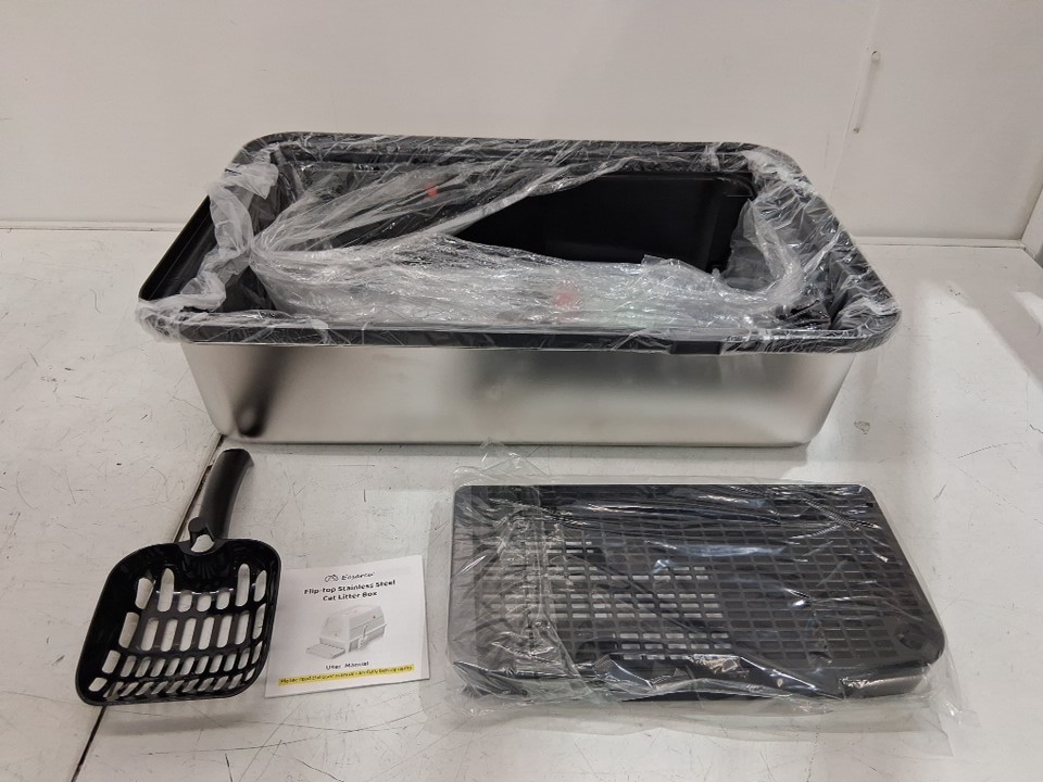 Eosarcu Easy Cleaning Cat Litter Box with Lid - 23" x 15" x 15" - stainless steel/black