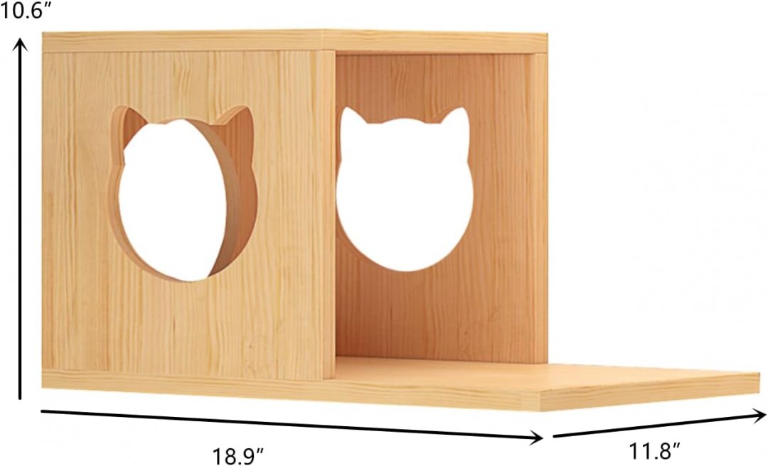 SHENGOCASE Natural Solid Wood Wall Mounted Cat Shelves WITH STAIRS - ASSORTED SIZES SHELVES - NATURAL