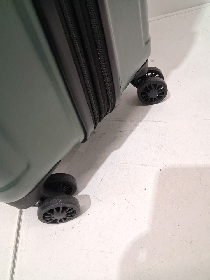 please note that there is light scuffs/scratches on the exterior, there is light wear on the wheels, and there is very light debris on the inside from previous use (see photos)