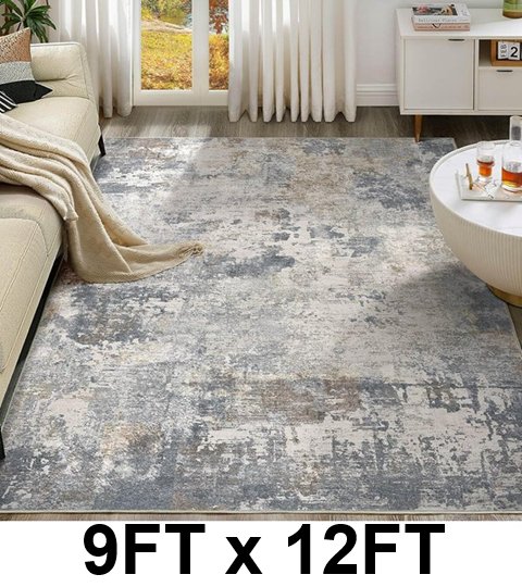 UERMEI Washable No Slip Abstract Soft Area Rug - 9FT x 12FT - Blue/Grey