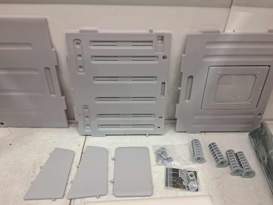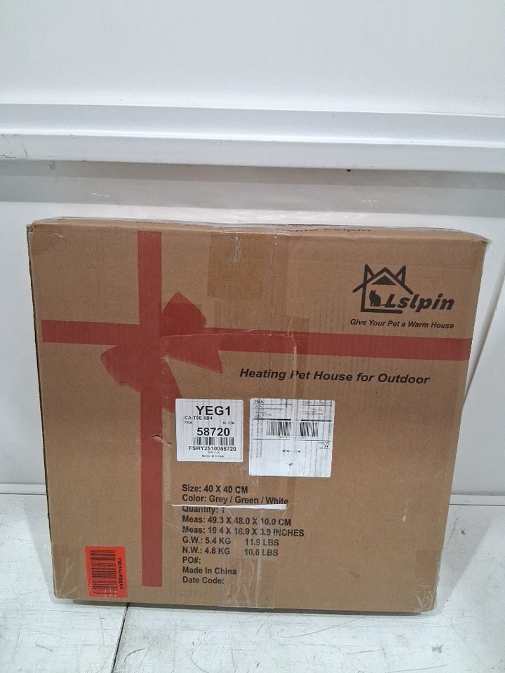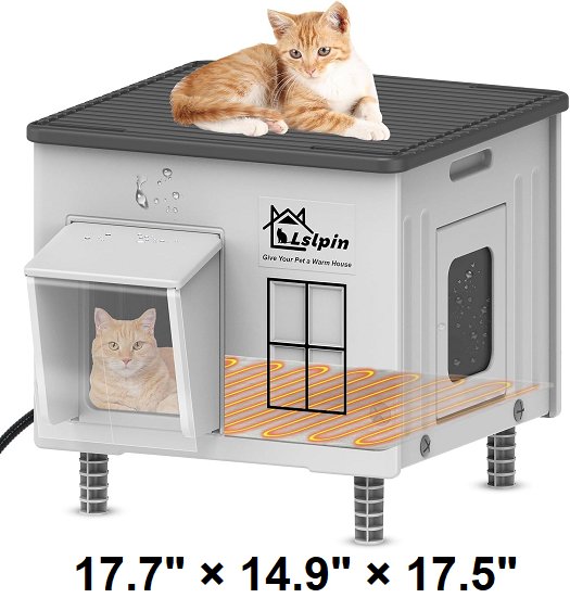 Lslpin Indestructible Heated Cat House with Escape Door - 17.7" × 14.9" × 17.5" - grey/white