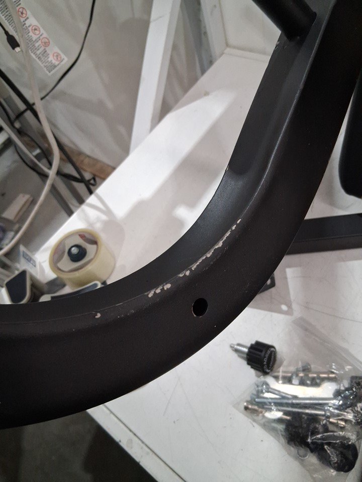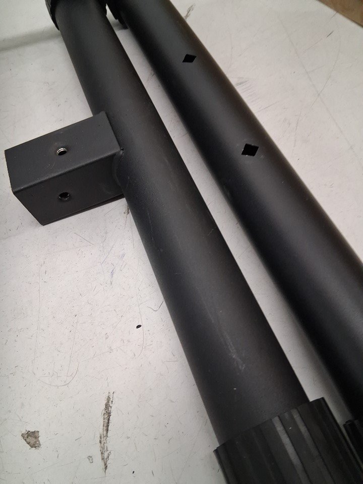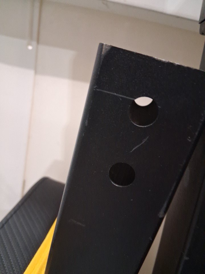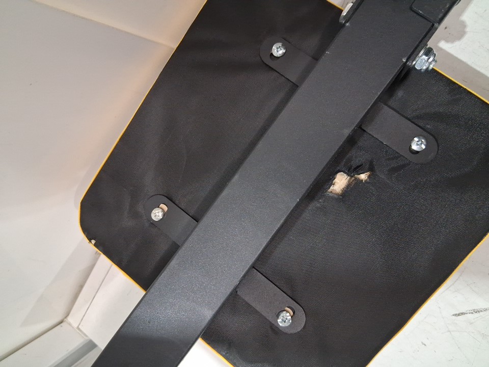 please note bars do have some paint chips and scratches both around assembly points and along main bar from previous use and shipping there is a tear in the under-seat fabric, does not affect assembly or function