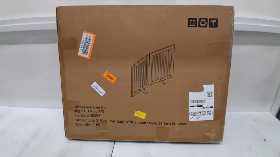 unipaws free standing dog gate wooden foldable - 24" x 40" - White (model:UH5254)