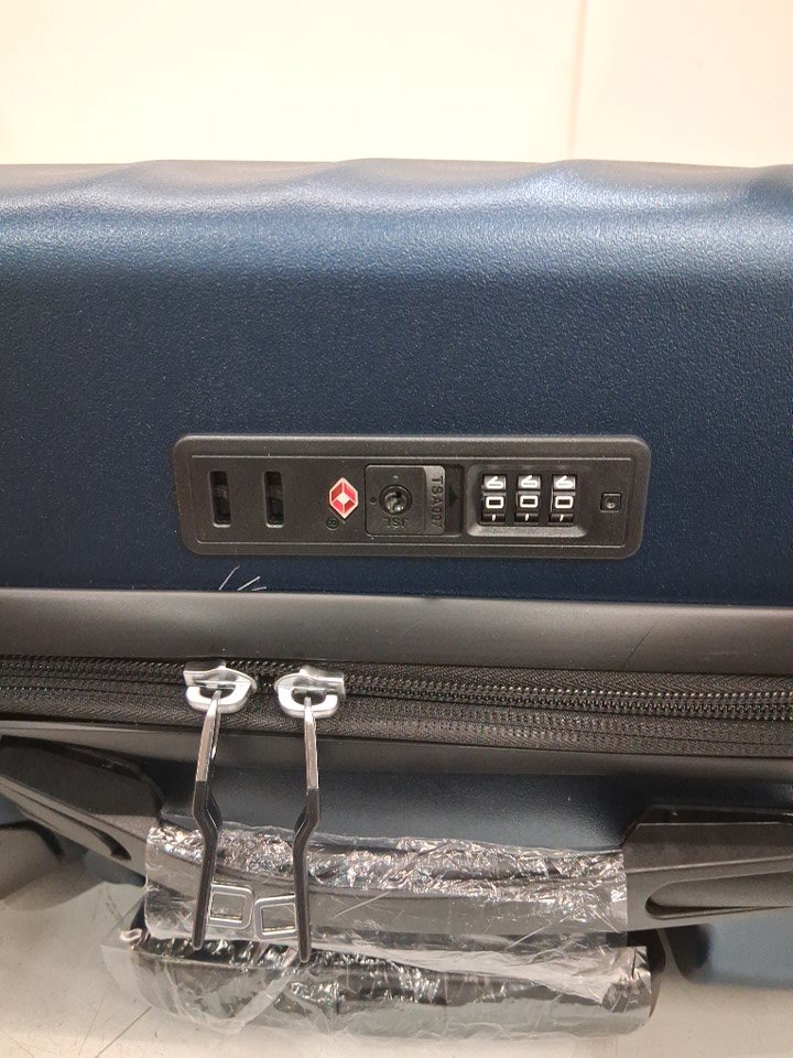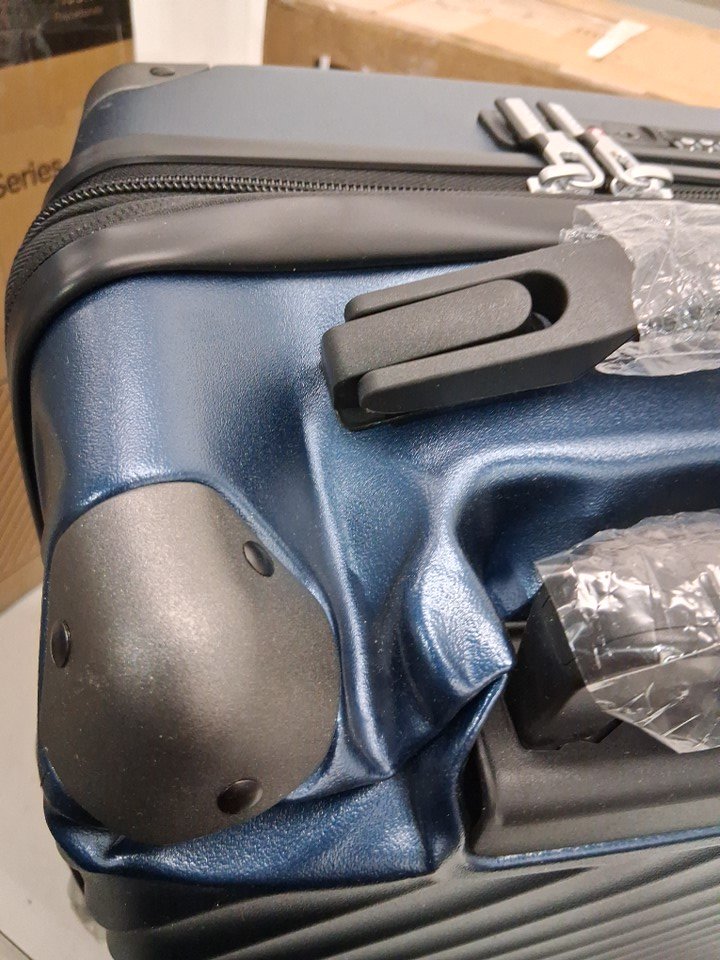 The item has a dent on the top of the luggage; see photos for details.