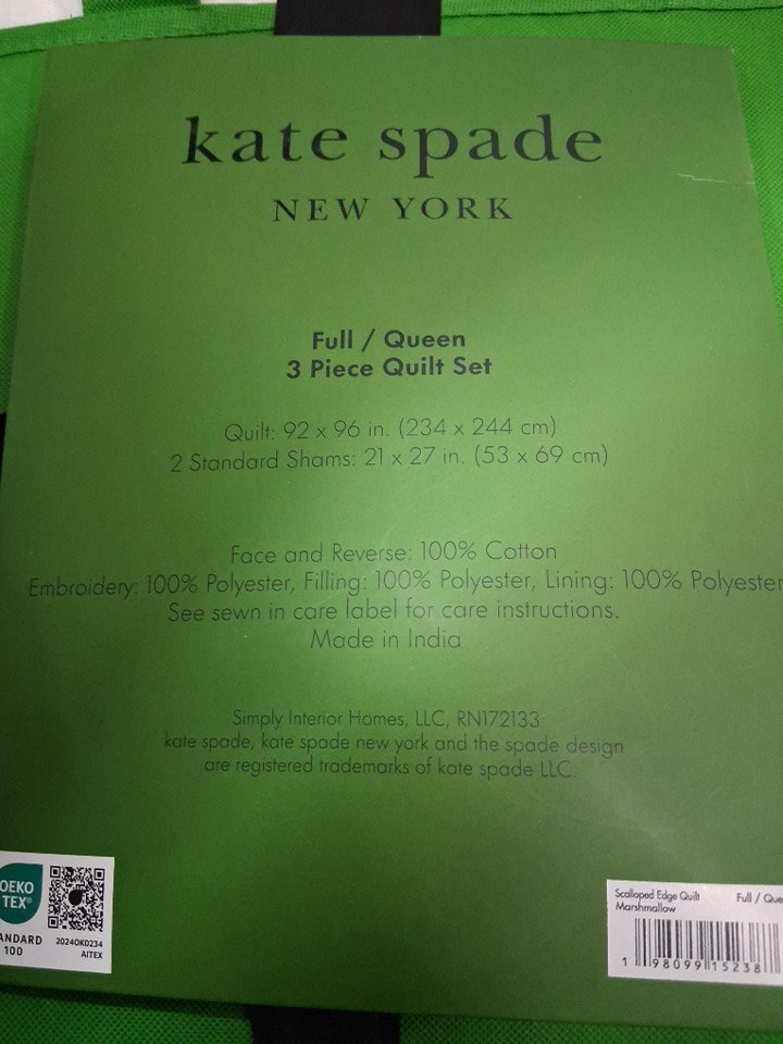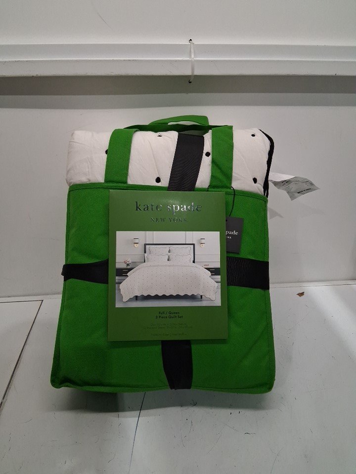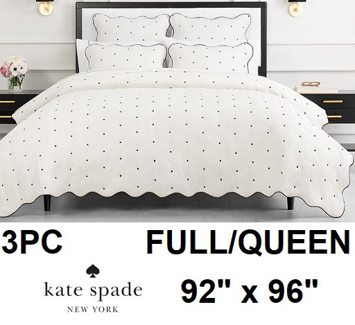 3pc Kate spade new york scalloped edge quilt bedding set with pillow shams - Full/queen - 92" x 96" - White/black