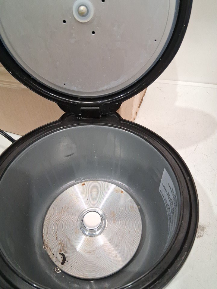 Tested for power. Has some residue in the maker from use.