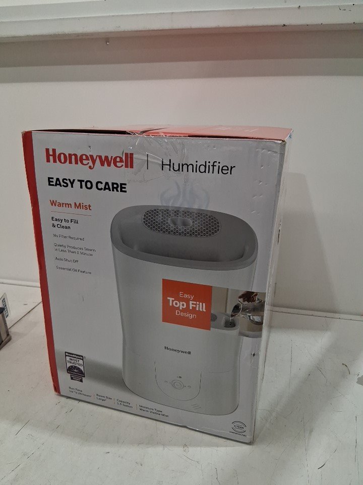 HONEYWELL TOP FILL WARM MIST HUMIDIFIER WITH ESSENTIAL OIL CUP - 1.5GAL CAPACITY - WHITE (MODEL: hwm440wc)