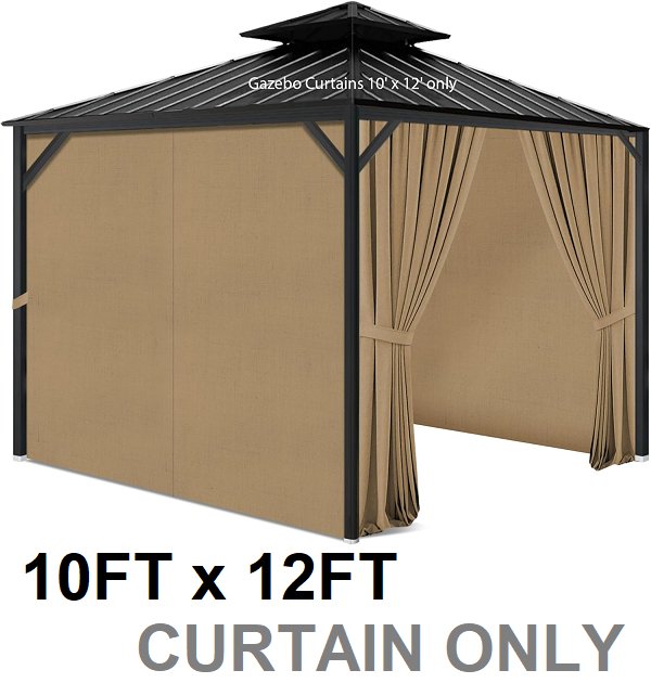 Gazebo universal sidewall curtain privacy shade panels set - 10FT x 12ft - KHAKI