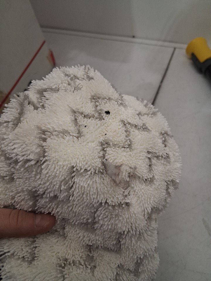 Pads have visible dirt discoloration and hair on them. There is water drops in chamber. Has been tested for power