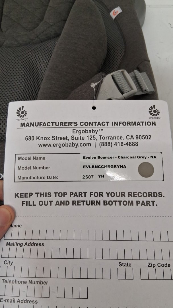 ERGOBABY EVOLVE 3-IN-1 ADJUSTABLE BOUNCER FOR NEWBORNS TO TODDLERS UP TO 20LBS - CHARCOAL GREY - (MODEL: EVLBNCCHRGRYNA)