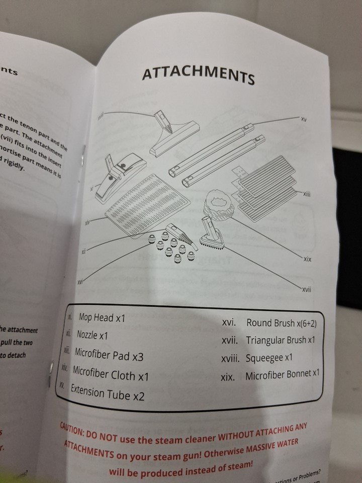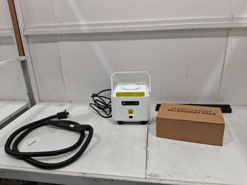 Please note that all of the round brush, microfiber bonnet, squeegee, triangular brush are missing from the original packaging. There are water stains on the steamer due to previous use. Tested for basic power only. (Please see photos)