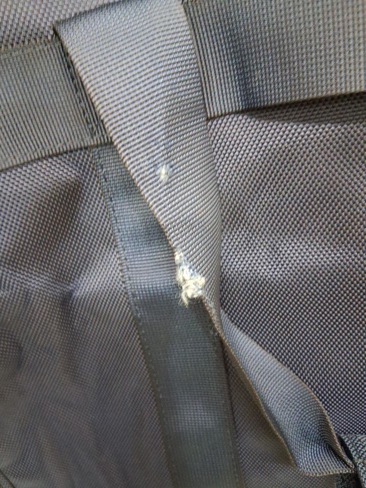 One handle has small tear likely caused from lack of packaging during shipping. (See photos)