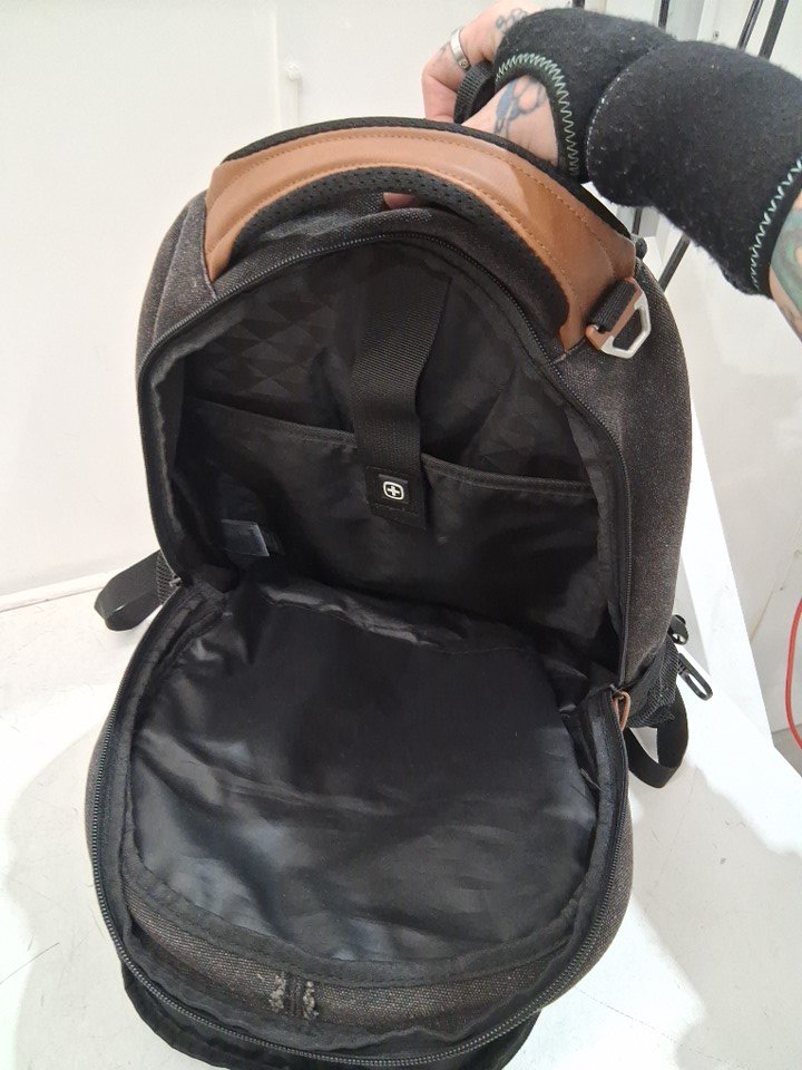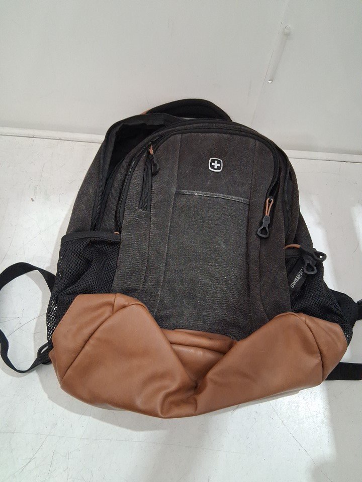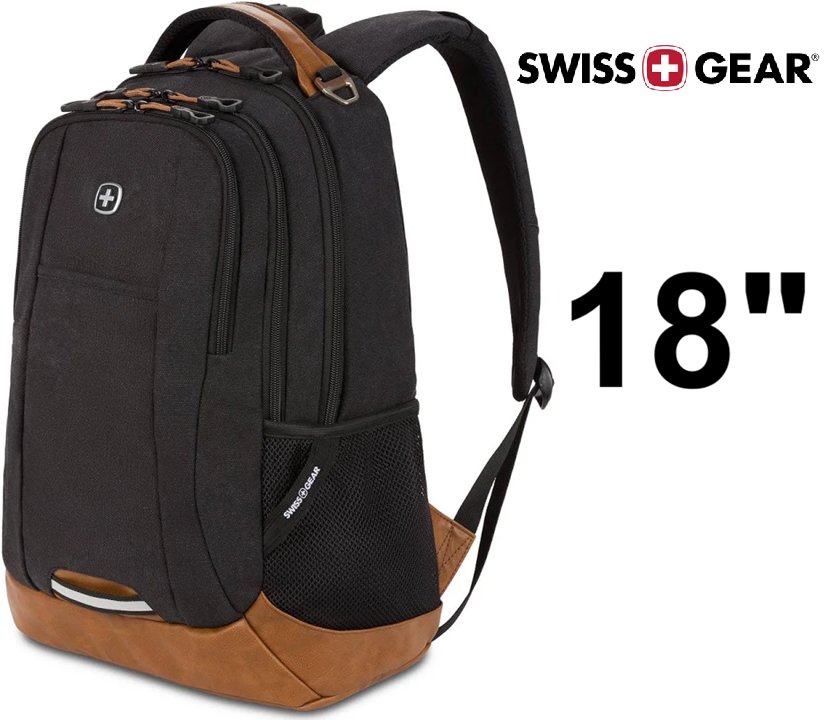 SwissGear Laptop Backpack - 18" - Black Canvas/Brown (model: Cecil 5505)