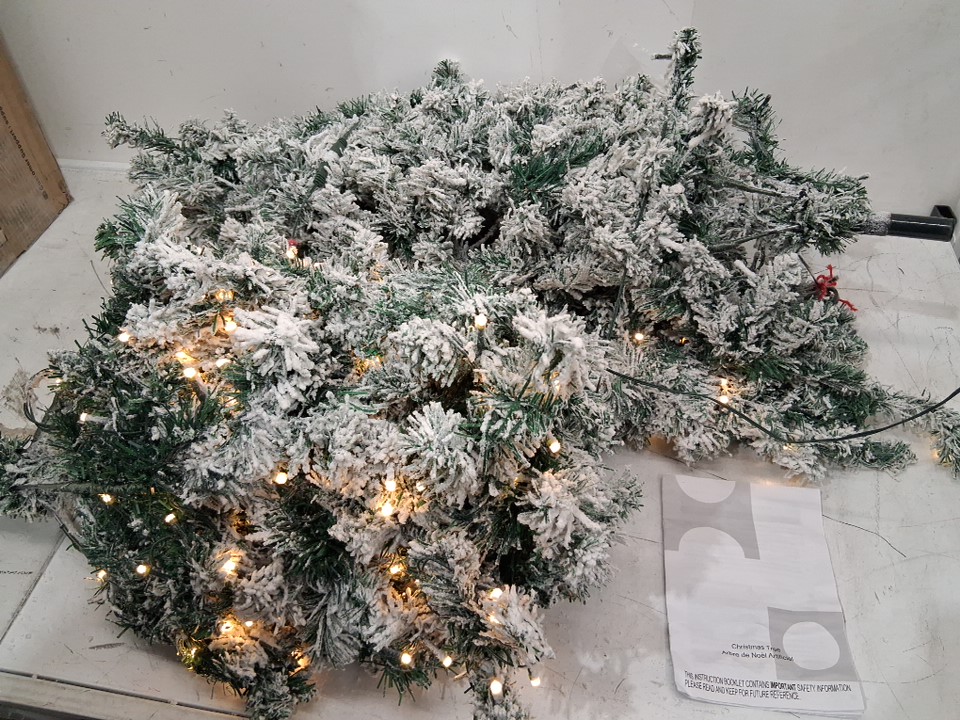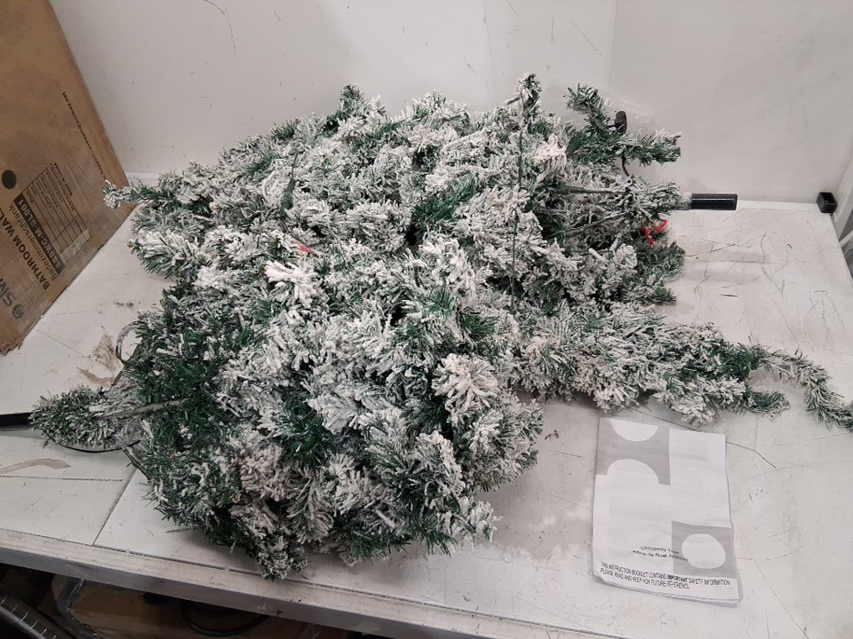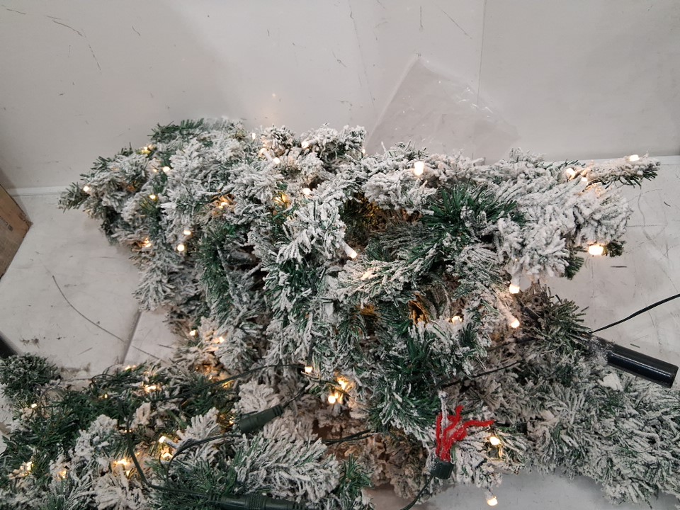 costway DORTALA pre-light snow flocked Hinged PVC Artificial Christmas Tree with stand and 350 white led lights - 7.5ft - green/white (model: cm22876us)