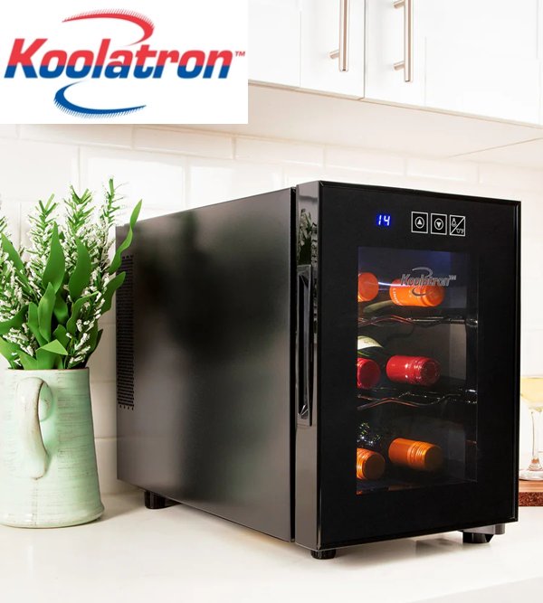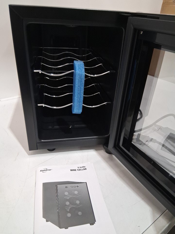Koolatron Mirrored Glass Door Wine Cellar - 6-Bottle - 20" x 10" x 14.3" - Black (MODEL: WC06 / JC-16C1P)