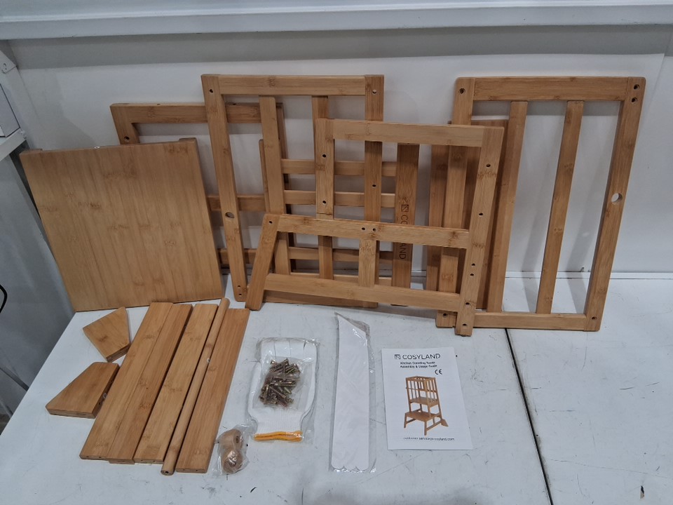 COSYLAND Kitchen Nursery bamboo Step Stool for Kids Toddlers Children with Removable Safety Rail - NATURAL WOOD bamboo