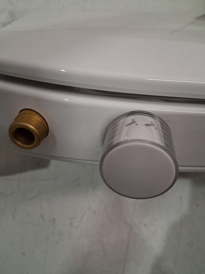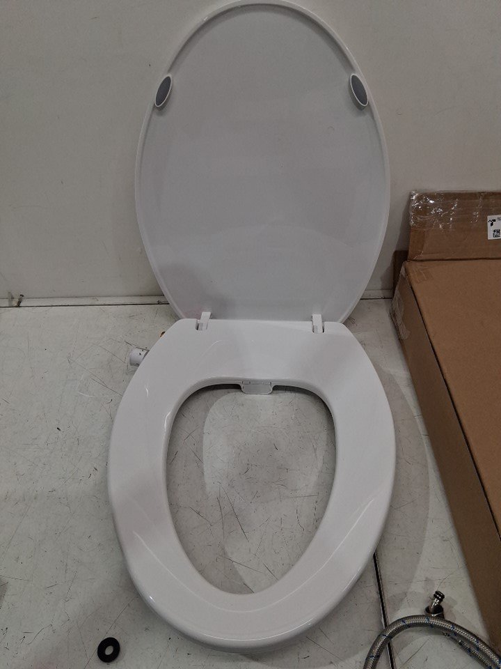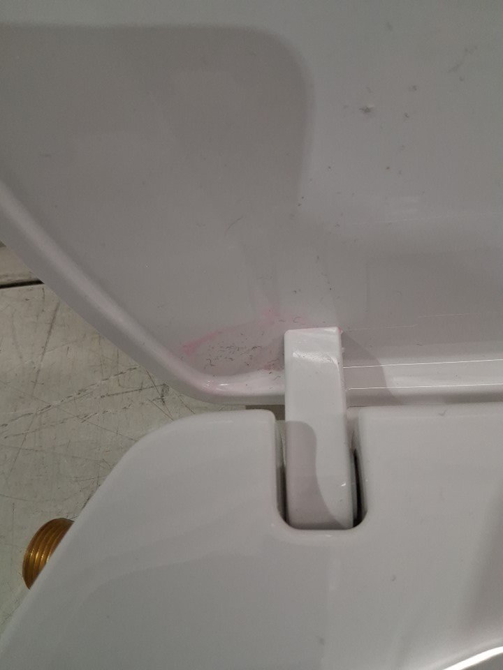 There are some scratches/scuff marks on the seat indicating previous handling. There is also some kind of pink residue near one of hinges, but it does not appear to have been previously installed (see photos)