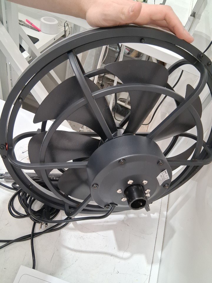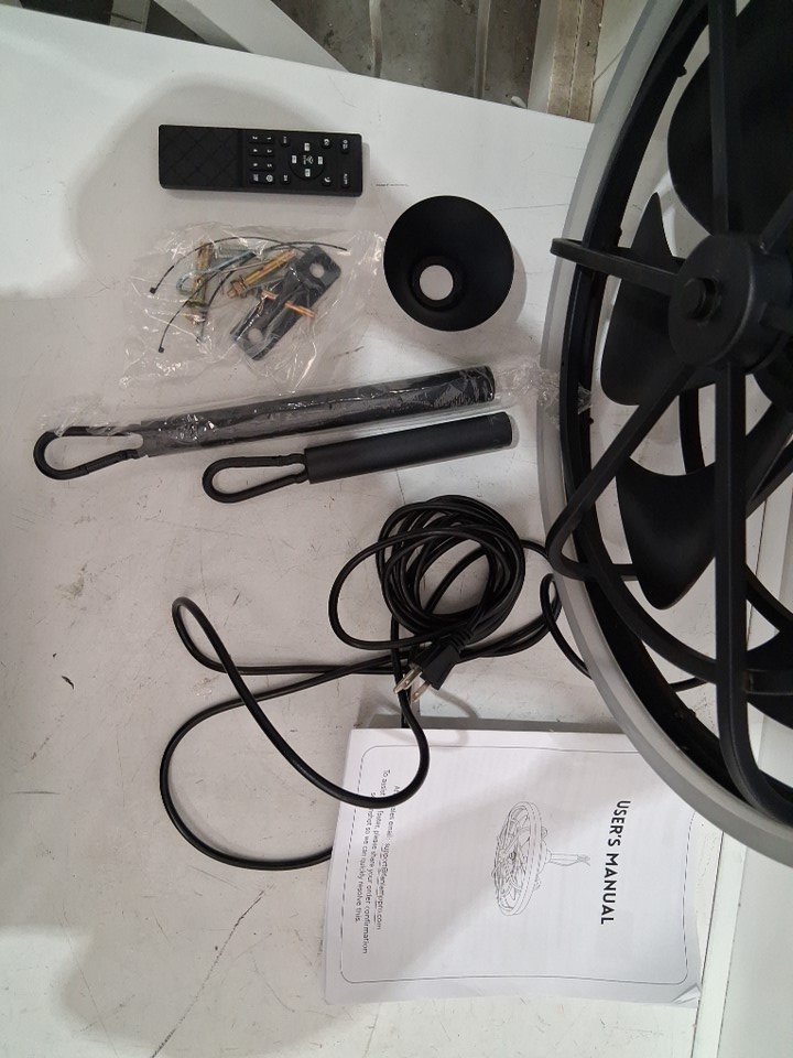 has some rust/water residue on fan blades and body, see photos Remote won't pair with fan, can be paired with App