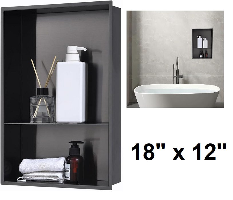 zdhht stainless steel shower niche with shelf - 18" x 12" x 4" - black (model: ‎ZK01B121804WL)