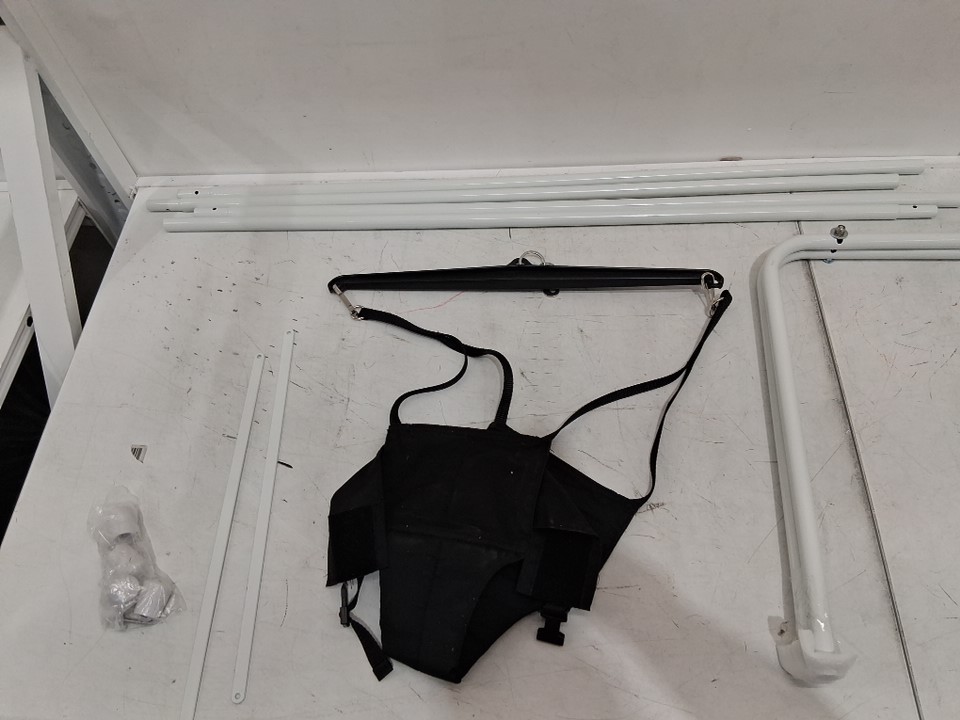 Jolly Jumper Classic Portable Baby Exerciser With Grey Fabric Saddle - 28 LBS Max - White/Grey (Model: 109)