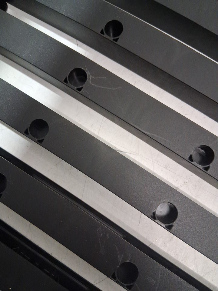 There are scratches on most of the plastic pieces and a couple of the long poles from previous use. One of the small fabric pieces also has a small scuff mark on it and the main fabric piece has some dust on it that may need to be wiped off with a cloth.