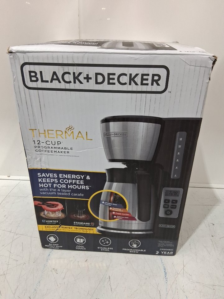Please note there is coffee grinds and some debris on the machine due to previous use (See photos). Tested for power.