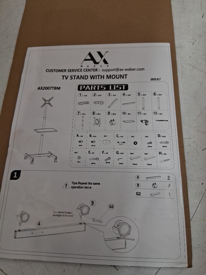 Ax Waber Mobile TV Cart Stand with wheels - Fits 13"-50" TV's - Black - (MODEL : AX2007TBM)