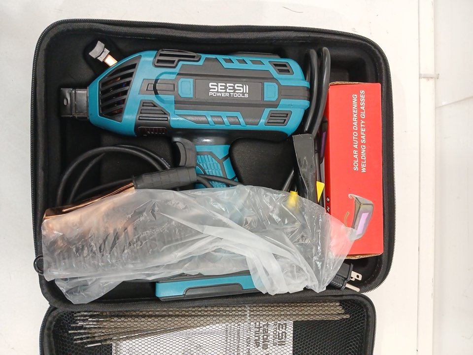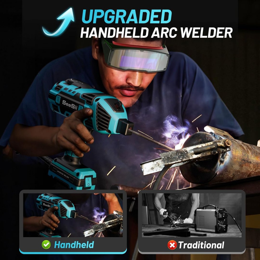 Seesii Portable Electric Welding Machine with Auto-Darkening-Goggles and Carry Case - 110V - Blue