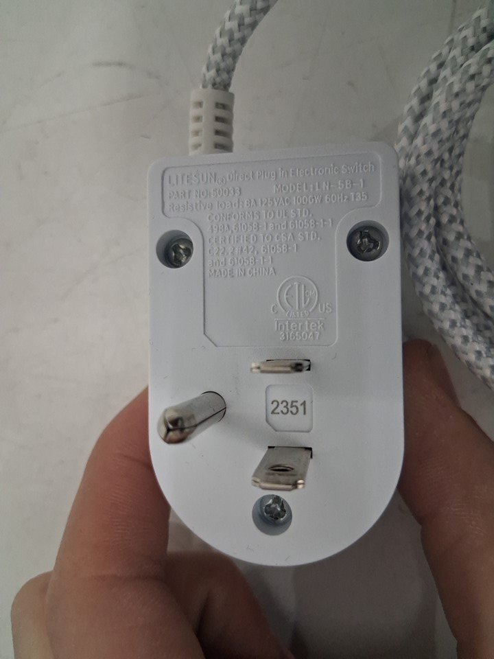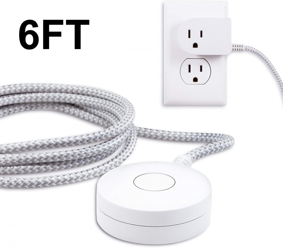 Cordinate Designer On/Off Switch Plug With Wall Mount - 6FT - White (Model: LN-5B-1)