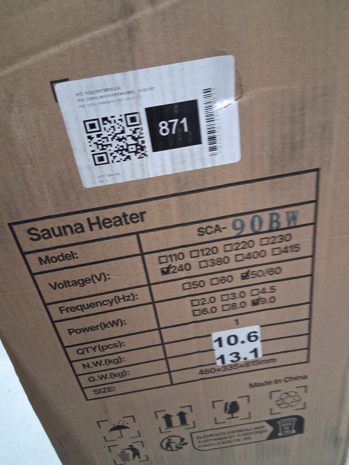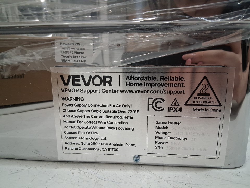 VEVOR DRY STEAM BATH STOVE SAUNA HEATER - 220V/9KW - 317-459 cu.ft - Black - (MODEL: SCA-90W)