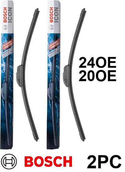 2pc BOSCH ICON Beam Wiper Blades SET WITH Driver and Passenger Side - 24" Driver Side/ 20" Passenger Side (MODEL: 24OE19OE)