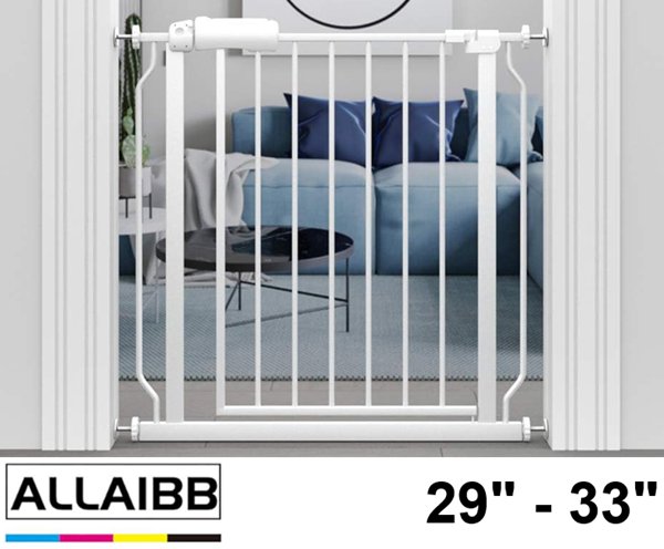 ALLAIBB Walk Through Pressure Mount Auto Close Tension Safety Gate - 29" - 33" - WHITE (MODEL: W046