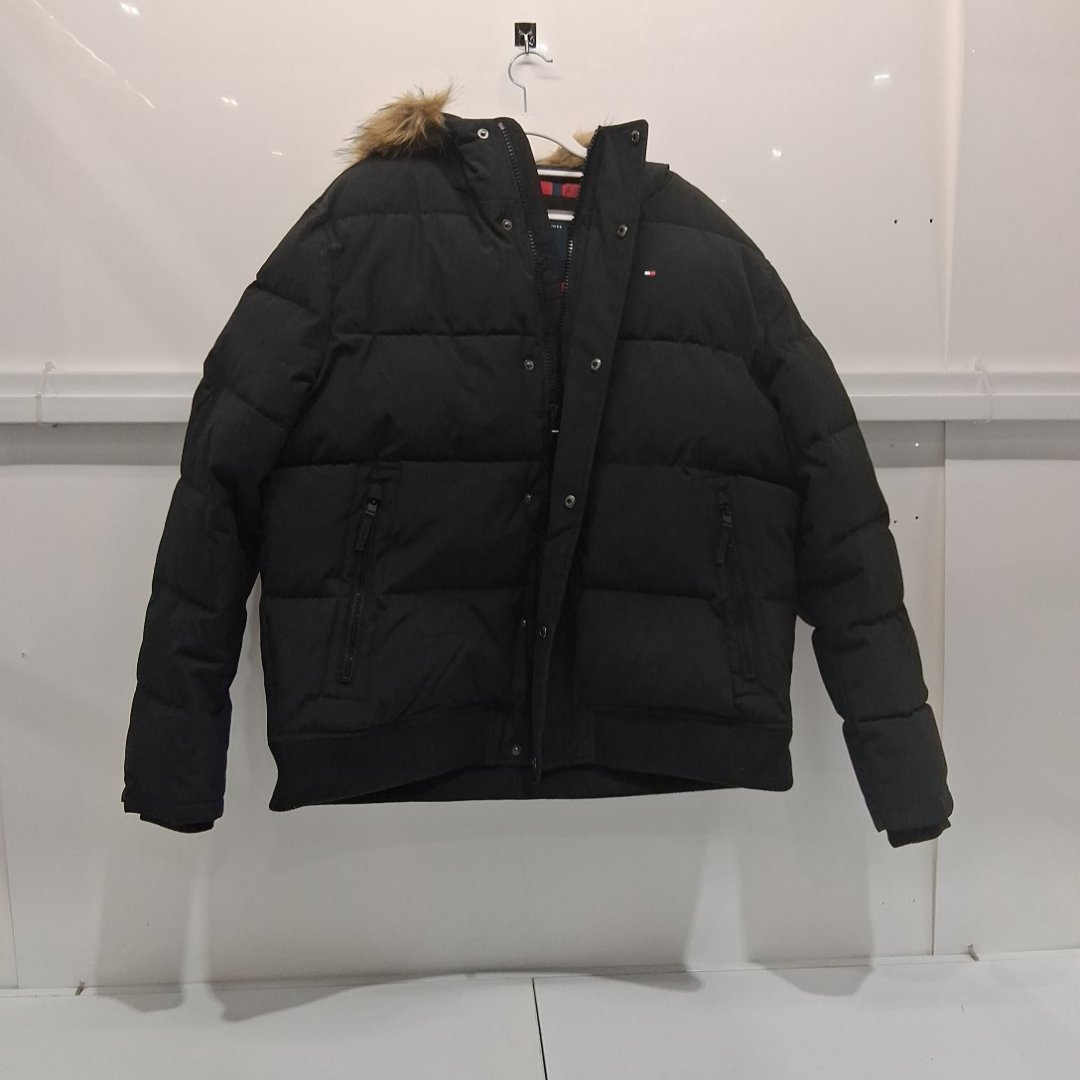 men's tommy hilfiger arctic cloth quilted snorkel bomber jacket - extra large - black (style: 159ap863)