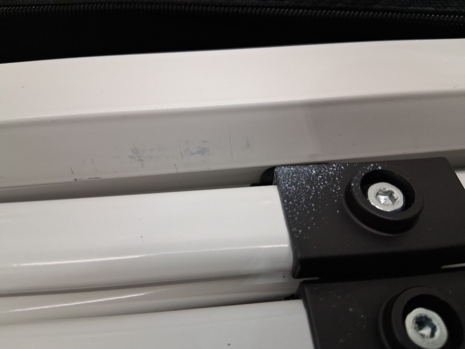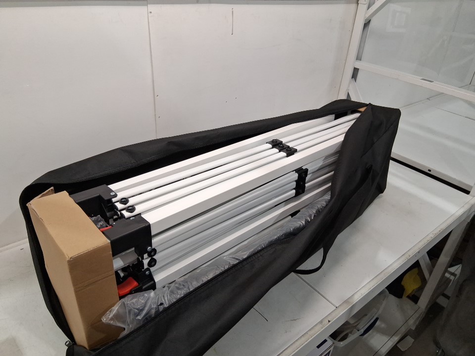 There are some scuffs on some of the metal poles as well as a small cut in the carrying case, likely due to shipping - see photos. Outside of these cosmetic blemishes, there are no clear signs of prior use or any other damage or issues.