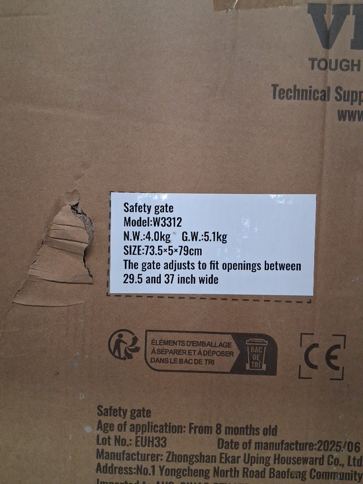 Vevor Easy Step Pet Safety Gate - 29.5"- 39"- white (model: w3312)