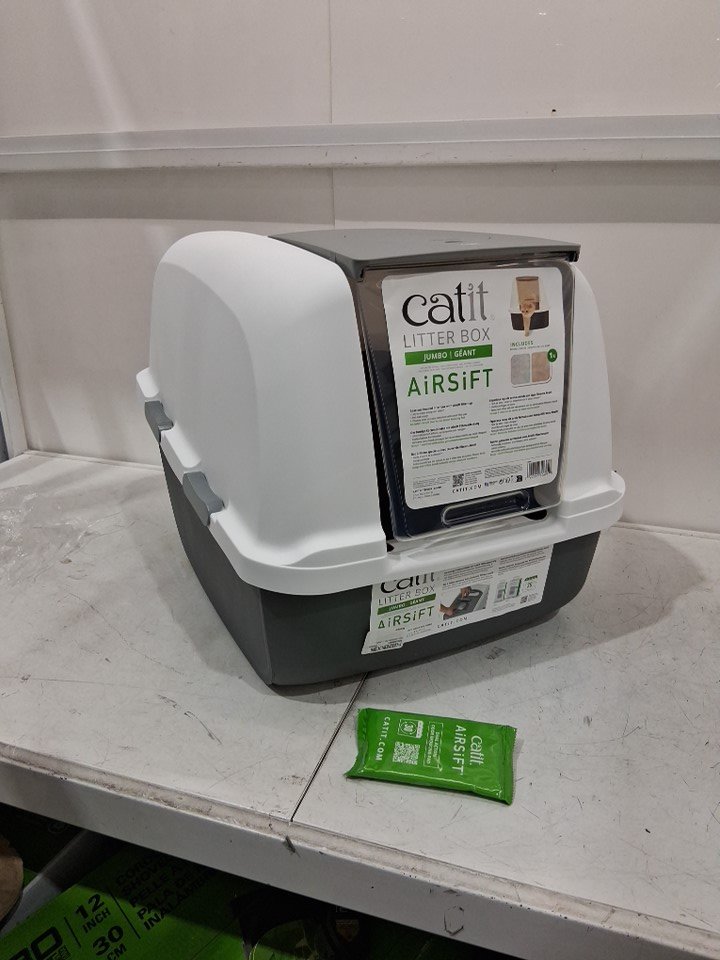 CATIT CLEAN JUMBO HOODED LITTER BOX WITH AIRSIFT AIR FILTER - 22.4" x 18.3" x 19.7" - GREY/white (model: 50695)