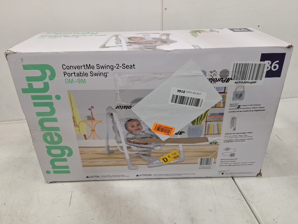 INGENUITY CONVERTME SWING-2-SEAT corded PORTABLE SWING - OM to 9M - RAYLAN FASHION / grey (MODEL: 12189-es)