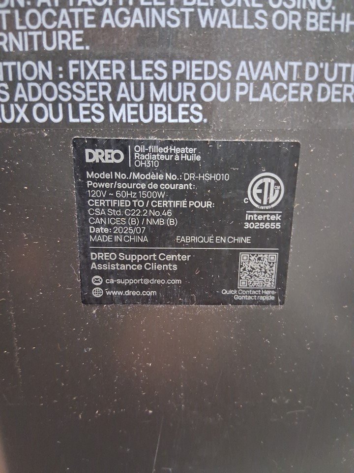 DREO Oil Filled Radiator Electric Radiant Heater with remote - 1500W - black (model: oh310/dr-hsh010)