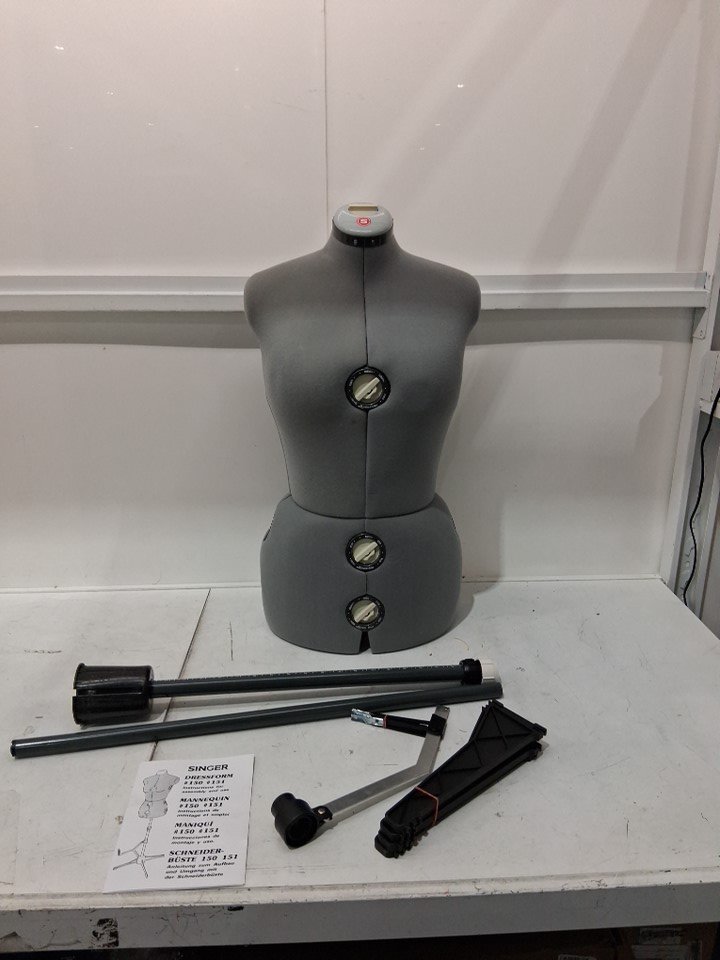 singer adjustable dress form WITH hem guide and height adjustment - sizes medium-large - grey (model: df151ml-gr)
